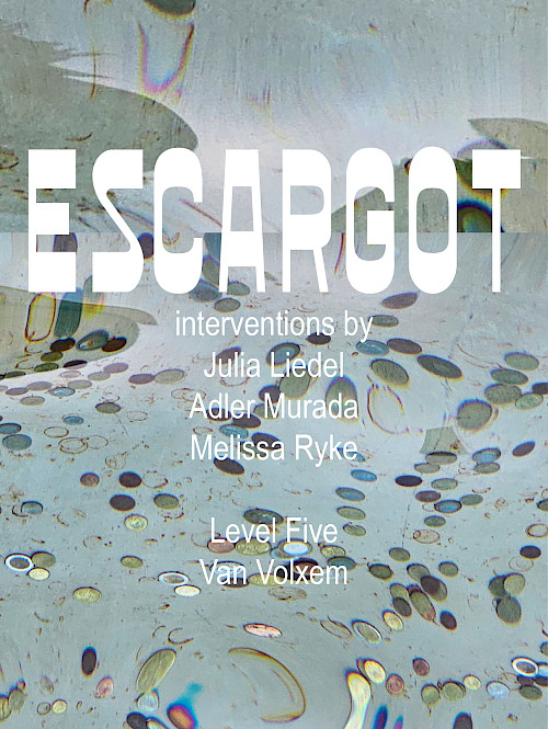 Escargot is a first tentative intervention to use the new vitrine space of Level Five’s Van Volxem studios as an exhibition space. In this initial intervention by Julia Liedel, Adler Murada and Melissa Ryke, Escargot is put forward both as the name for the show, as well as a name for the space that recalls the spiral shell of a snail.