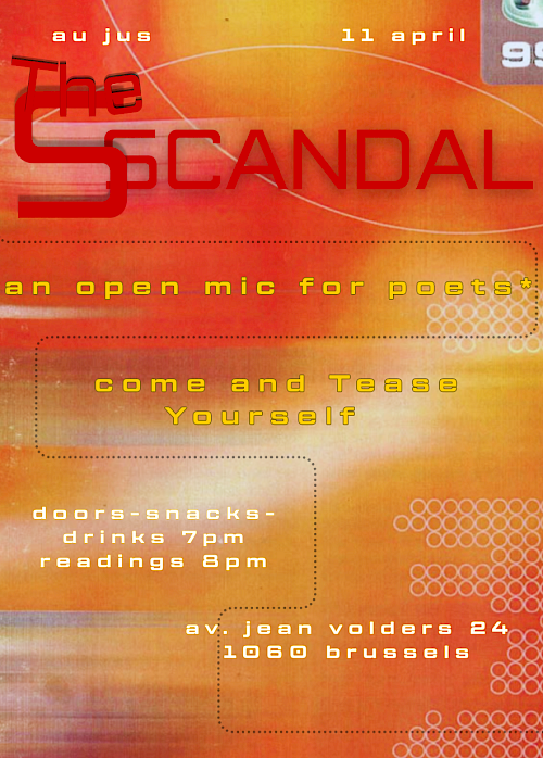 Come and join the second The Scandal open mic night for poets* on the 11th of April in au JUS!