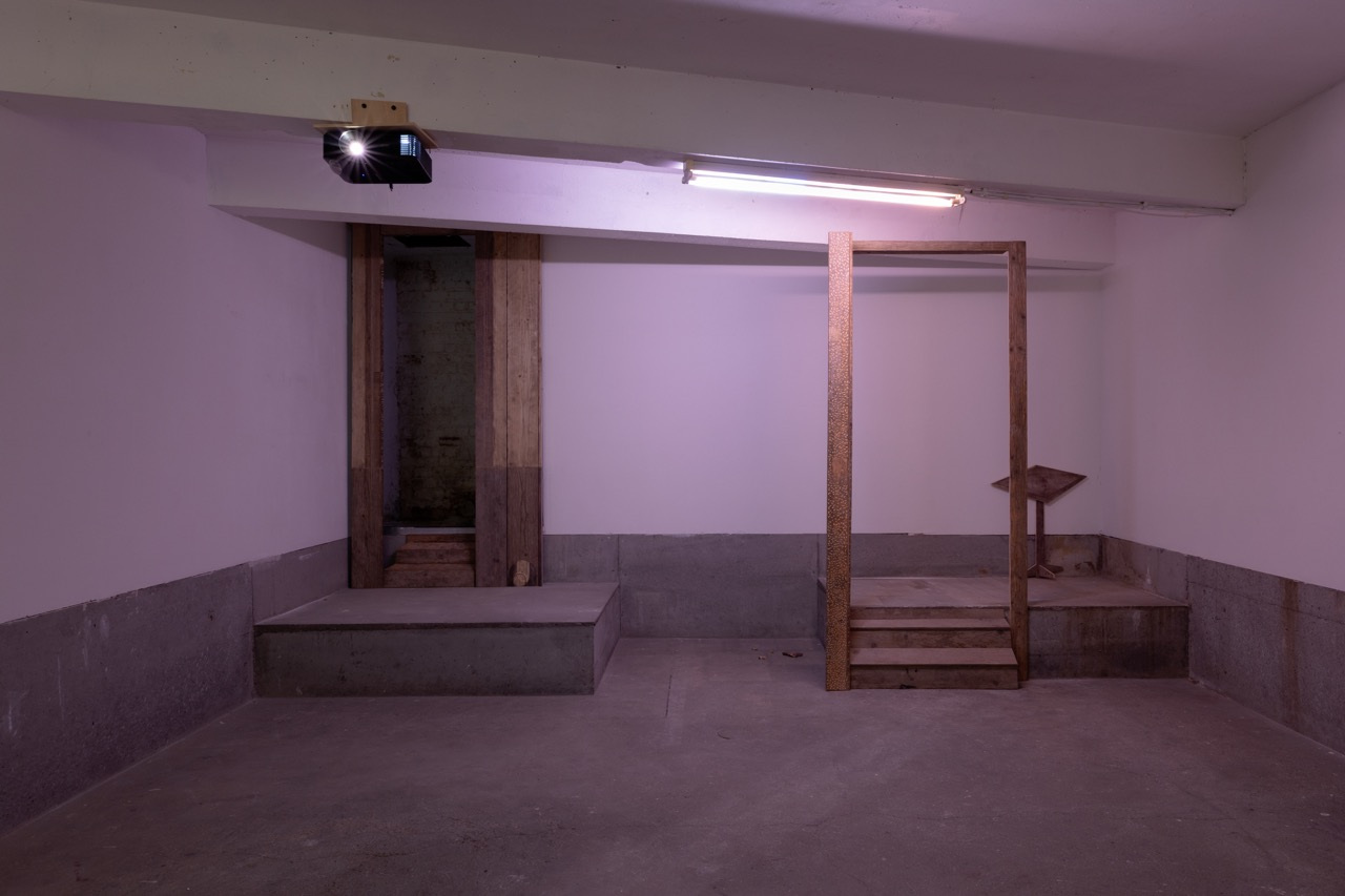 The beginning of SB34 started with a ground floor of 500m2 at 34 rue Saint-Bernard in Saint-Gilles. The place is rented from January 2018 and houses a dozen studios shared by around twenty artists from all over the world. The space is organized around a tiki-inspired installation-bar, entitled Manta Ray in a nod to Man Ray. The bar quickly becomes a gathering place both for resident artists and for a larger community that meet there for public cultural events programmed in The Pool: the basement room with its particular structure, a sort of white-bunker lined with concrete seats that inspires a hybrid and experimental program nourished by collaborations. The resident artists as well as peripheral artists, authors and curators are invited to respond to the particular space.