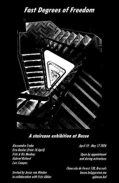 This fast story full of joy and desperation is the inspiration and script that is deconstructed and refueled with artistic interventions for ´The Second Bakery Attack´, a programme organised and curated by Marie De Broeck and Friedrich Trost, in collaboration with Erro Rasker and Becue, on Saturday 18 April 14-20h. This first one of the activations of ´Fast Degrees of Freedom´ (more to be confirmed) marks the opening of a second chapter to the exhibition, with Erro Rasker adding his intervention.