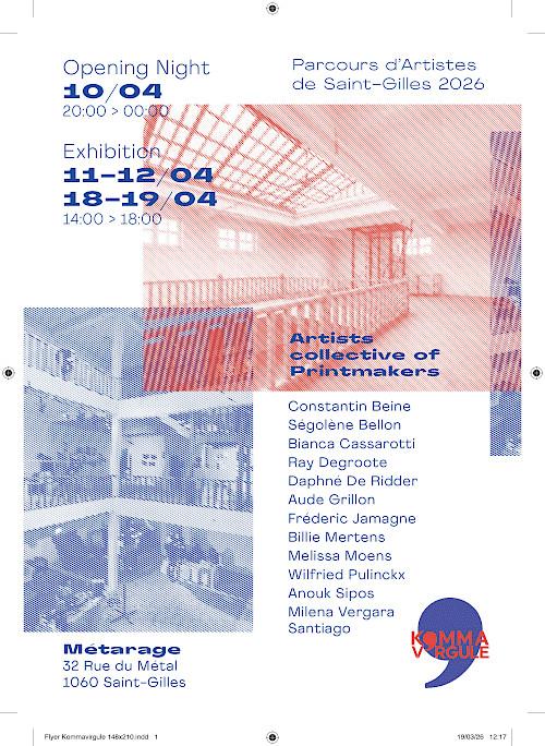 Komma Virgule is a Brussels-based collective of artists brought together by a shared passion: image printing in all its forms. Multidisciplinary in nature, the group explores the many languages of screen printing and hybrid techniques, combining traditional craftsmanship with contemporary experimentation.